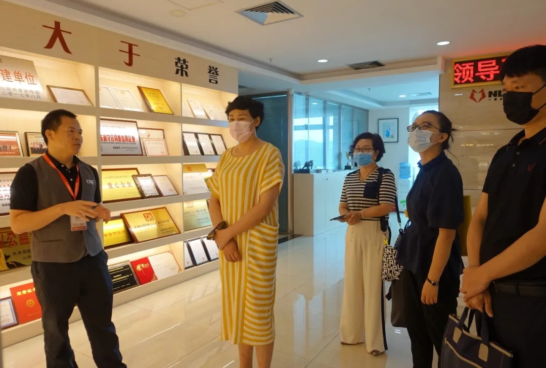 李倫華區(qū)長(zhǎng)(左二)一行領(lǐng)導(dǎo)參觀(guān)心里程