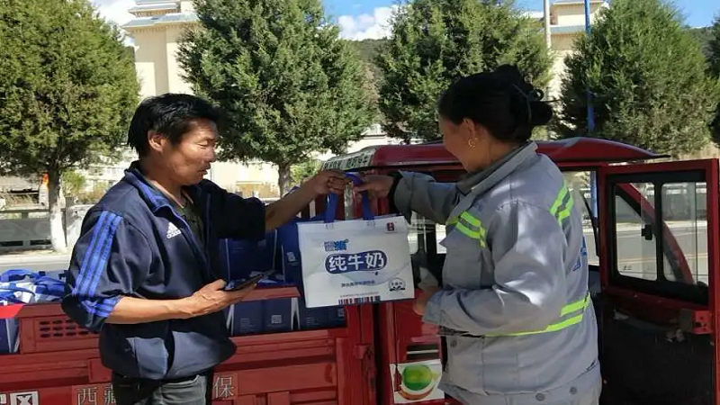 為感謝他們多年來的辛勤付出,國策環(huán)保林芝分公司相關(guān)人員向作業(yè)在一線的環(huán)衛(wèi)工人以每人80元的標(biāo)準(zhǔn),發(fā)放了當(dāng)?shù)靥禺a(chǎn)雪頓純牛奶、嘎瑪雞蛋、鹽等慰問品,共計274份。