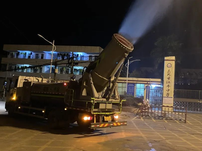 裝載完成后,車(chē)隊(duì)長(zhǎng)曾慶彪開(kāi)著裝滿(mǎn)消毒液的霧炮車(chē)對(duì)重點(diǎn)疫區(qū)江平鎮(zhèn)各主次干道、人流密集場(chǎng)所、重要點(diǎn)位進(jìn)行高炮霧化消毒,以增強(qiáng)街道消毒效果,最大限度減少病毒滋生蔓延,切實(shí)為市民提供一個(gè)安全、清潔的城市環(huán)境。