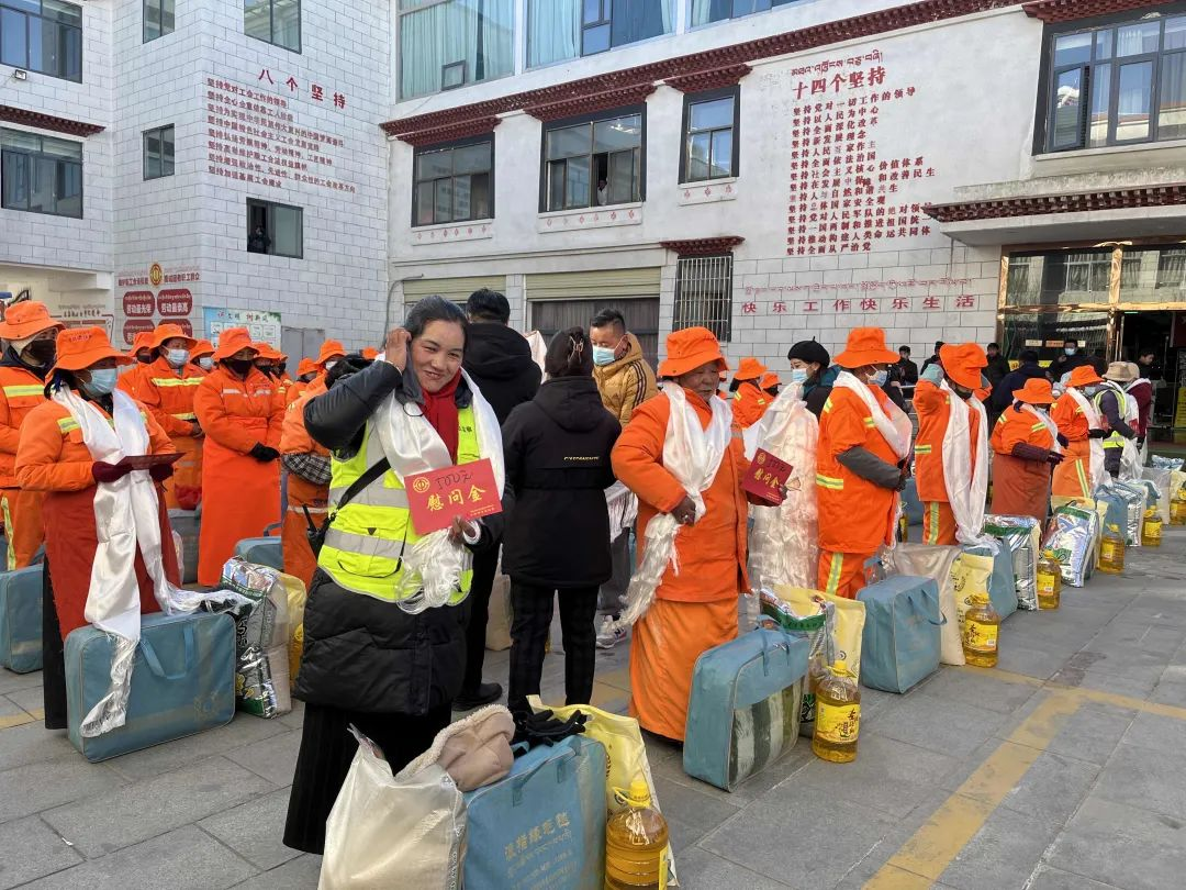 1月27日,日喀則市總工會(huì)在市總工會(huì)大院內(nèi)開展了2022年 “三大節(jié)日”送溫暖集中慰問活動(dòng) 。日喀則市城市管理和綜合執(zhí)法局副局長普布出席慰問活動(dòng)并向國策一線環(huán)衛(wèi)員工獻(xiàn)上了潔白的哈達(dá)和慰問品。